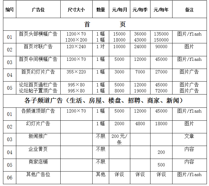 注:以上广告价格均不含税,若要发票需另外支付广告业发票税率。
